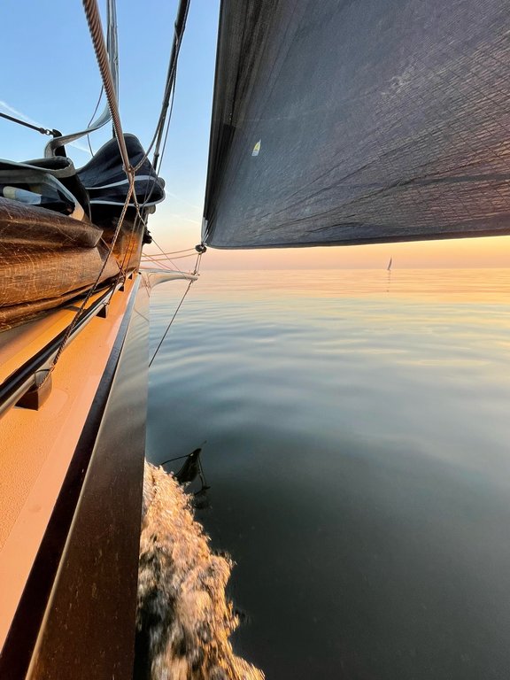 Den Ergebnissen vorausgegangen war eine vielfältige Regatta. Nachdem wir uns schwer taten, bei den nur 3 kt Wind beim Start überhaupt Fahrt ins Schiff zu bekommen, folgte ein langes Leg nach Westen, während dessen wir lange Zeit Seite an Seite mit einem norwegischen 76-Füßer segelten, auf dem die warme Dusche zum guten Ton vor der Freiwache gehörte.