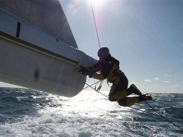 da melden wir uns wieder nach einer anstrengenden Nacht. Pünktlich gestern Abend erreichte uns eine Sturmfront mit 30 kn (in Böen bis zu 40 kn), so dass wir letztlich nur noch mit der G4 bewaffnet und immernoch ordentlichen Geschwindigkeiten jenseits der 10 kn durch die Ostsee gepflügt sind. Leider setzte das Wetter fast allen ein wenig zu. Aber immerhin haben wir bereits unser erstes relativ großes Etmal von 225 sm zu Buche stehen. Mittlerweile sind wir alle wieder fit und mühen uns gegen die Wellen an, so dass es ein stetiges Stopp-and-Go ist, das unter Deck durch ein ständiges knallen begleitet wird.