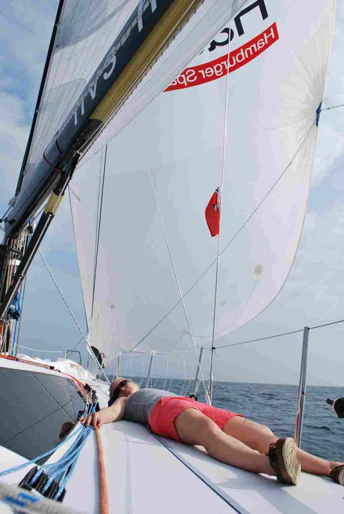 Unsere bisher harte Überführung kurz gefasst: Verpflegung: gestern Chilli con Carne, Frühstück Müsli mit Joghurt und frischem Obst, heute Abend Spaghetti Bolo! Kleidung: vorranging kurze Hose und T-Shirt/ Top! Musik: Lounge! Stimmung: Super!