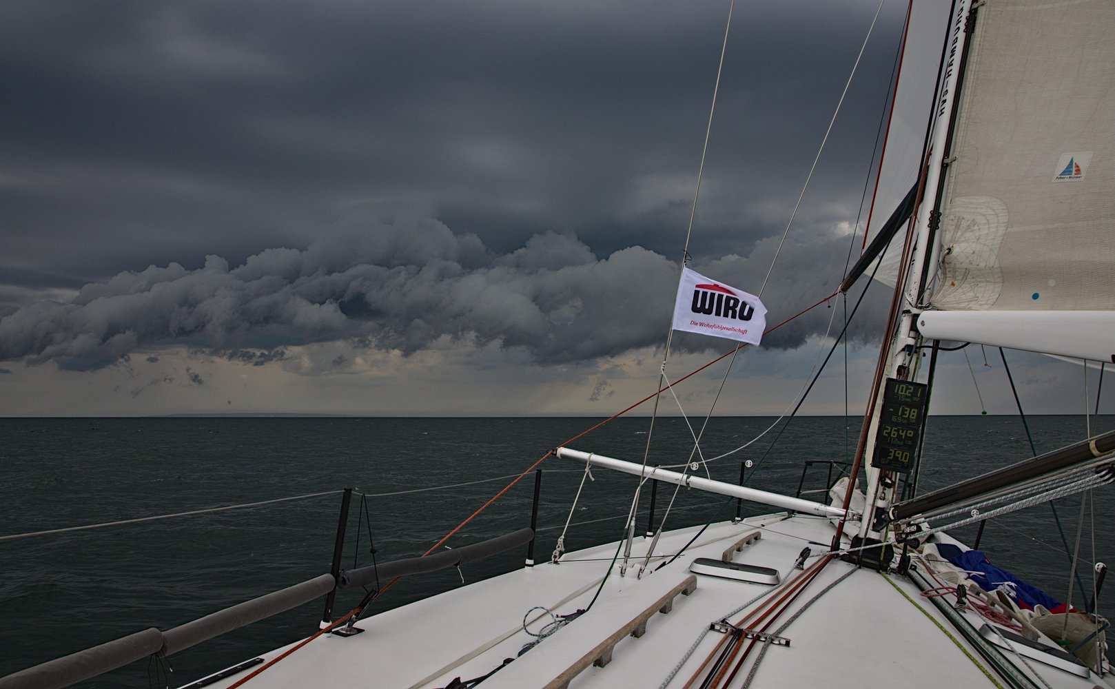 Jedoch ließen die Wettervorhersagen unsere Seglerherzen nicht so hoch schlagen: Fast alle Modelle sagten wenig bis keinen Wind an. Doch es sollte sich zeigen, dass man sich zur Zeit nicht so ganz auf die Vorhersagen verlassen konnte. Zwar starteten wir mit sehr wenig Wind, jedoch frischte er dann gegen Abend auf und gegen 20Uhr hatten wir Hiddensee quer ab. 7 Stunden früher als geplant. In den darauffolgenden Stunden wechselte sich dann nicht nur das Wetter (Regenschauer, aber auch viel Sonne) sehr regelmäßig, sondern auch der Wind schwankte immer wieder zwischen 2kn und 15kn bis 20kn. Die Wetter- und Windvorhersagen waren also alle sehr widersprüchlich. Somit bestand die Regatta aus vielen Segelwechseln und taktische Entscheidungen mussten immer wieder neu überdacht werden. Am Ende schafften wir die knapp 280sm in 42h zu segeln und überquerten am Mittwoch um 6Uhr morgens die Ziellinie, 2,5h vor der Edelweiß und 5h vor der Universitas. Berechnet bedeutete das für uns einen 4. Platz in der ORC 1/2 Wertung. Ein Ergebnis mit dem man zufrieden sein kann.