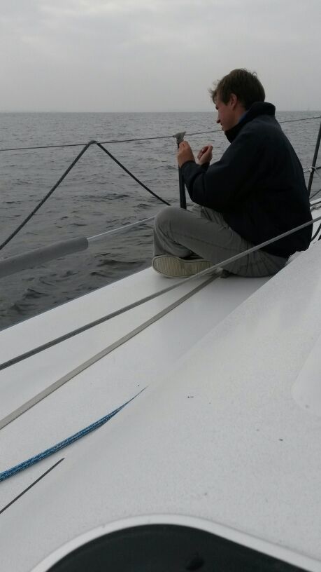 Auch wenn der Begriff "Saunaclub" die letzten Tage (und Nächte) zum Teil durch einen elektrischen Heizlüfter geprägt wurde, ist heute dank einer steiferen Brise der sportliche Aspekt in den Vordergrund gerückt. Diverse Segelmanöver und schnelles S4-Segeln mit über 12 Knoten Boatspeed hielten uns zeitweise sogar von der Einnahme von Mahlzeiten ab. Viele Knoten gab es auch am Vormittag, als wir noch sehnsüchtig auf Rasmus' Unterstützung warteten: Wir nutzten die Zeit und erneuerten die Lederkappen an den Relingsstützen. Dem Ausbildungsgedanken folgend wurde nach dem Anlegen eine kleine Auffrischungsrunde zur Knotenkunde angeboten.