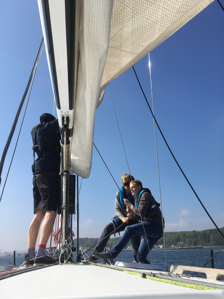 dafür aber mit T-Shirt und Sonnebrille ging es raus aus der Förde.