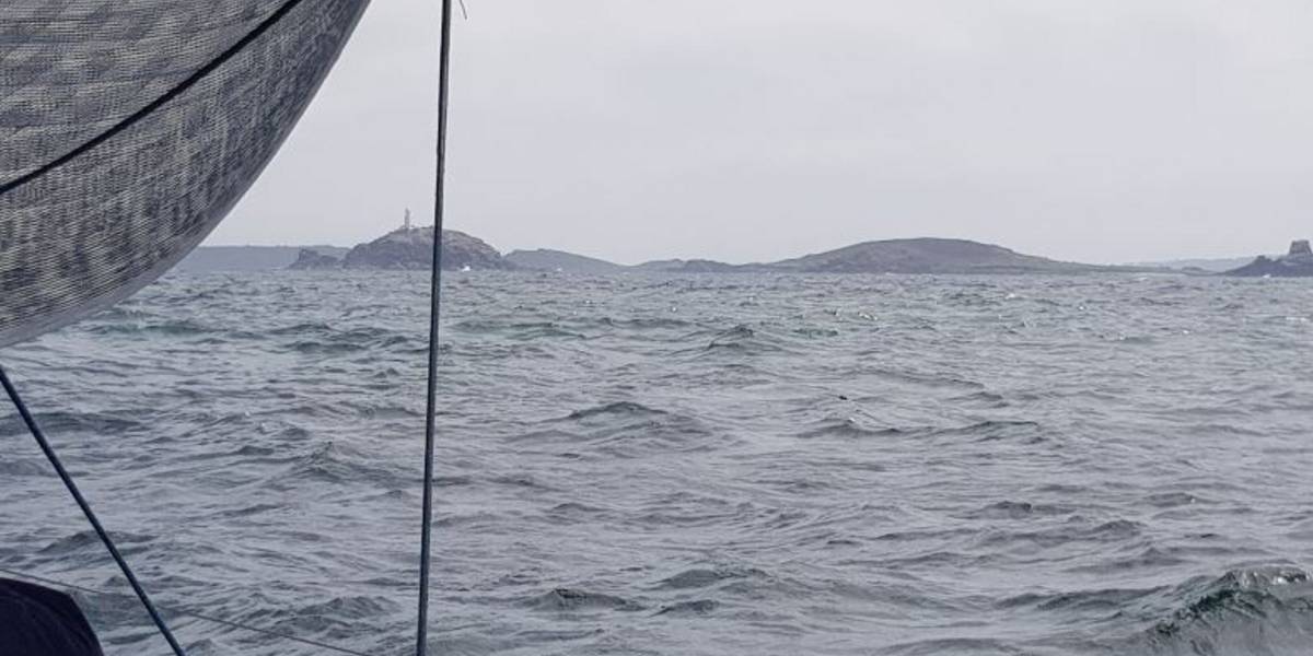 Am nächsten Tag gegen mittag, also heute, ist es dann soweit: Land in Sicht, die Scilly Islands liegen voraus und kommen mit 12 Seemeilen pro Stunde näher. Beherzt stellen wir die Bordzeit direkt auf Hamburger Zeit um drei Stunden vor, als wir die Inseln gut gelaunt nördlich bei besten Bedingungen passieren. Wir sind ja quasi bald da. Ein britischer Hai wird gesichtet und kurz darauf auch das, was er gejagt hat. Ein vollkommen erschöpfter Seehecht (oder ähnlich, sagen wir Makrele) springt zu seiner vermeintlichen Rettung direkt durchs offene Heck ins Cockpit. Unsere resignierten Angler bekommen also, was sie wollen, richten aber nach schnellem Trophäenfoto für's Ego kurzer Hand über das vermeintlich bessere Schicksal des Gesellen und übergeben ihn wieder den Fluten. Du schaffst das, mein Junge. So rauschen wir an charakteristischen Klippen gepaart mit Highlander-Hochebenen vorbei (von stinkenden Paarhufern übrigens keine Spur), bis kurz nach Passage der Scillys der Vorhang fällt (wie auch Wind und Speed) und das Kapitel Atlantik geschlossen wird.