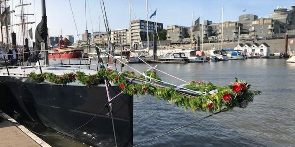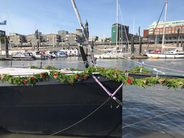 Nach einer Ansprache von Hanns Ostmeier konnte Frau Dr. Ulla Scheder-Bieschin den Champagner über dem geschmückten Bug der rassigen neuen Yacht ausschenken und somit den 4. Störtebeker des Vereins an die jugendlichen Segler übergeben. Ein Blick unter Deck offenbarte den interessierten Gästen, dass diese Yacht ein deutlicher Schritt nach vorne ist und den ambitionierten jungen Leuten viel Spaß am Hochseesegeln bereiten wird. Ausbildung steht wie schon beim ersten Störtebeker an erster Stelle und wir freuen uns auf viele erfolgreiche Jahre mit dem neuen Schiff.