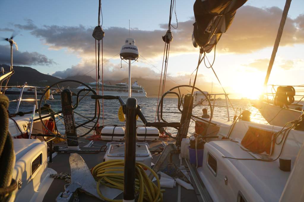 Wir bekamen eine weitgehend „geordnete“ HASPA Hamburg übergeben! Die Spuren der langen Reise sind bescheiden.. Dennoch entstand die Frage nach dem Unterschied eines stinknormalen Autos und unserer vorübergehenden roten Heimat: Bei einem Auto steigt man ein, dreht den Schlüssel um und fährt los… Mit der HASPA Hamburg gibt es einfach immer erst einmal festzustellen, welche „Baustellen“ es gibt und was diese jeweils bedeuten (Mechanik, Elektrik, Gas, Ventile, Rigg, Segel, etc., etc.). Das füllte gerne und schnell die nächsten Tage. Ach ja, und dann ist da noch das Thema „Stempel sammeln“… Man sollte nicht glauben, dass Bürokratie ein deutsches Privileg sei! Desweiteren gilt es für die neue Crew sich an die typischen Bord-Hindernisse wie z.B. die Grinder-Gestänge als Kopfnuss-Geräte zu gewöhnen. Oder: Wie viel Anker-/Landleine könnte man im Beagle-Kanal und der Magellan-Straße brauchen, wenn es dort windet, d.h. mehr als 40 kn Windspeed über Nacht… Und dazu die richtige Ankergröße. Wir haben uns für stabile Schmiede-Arbeit aus Schottland entschieden….