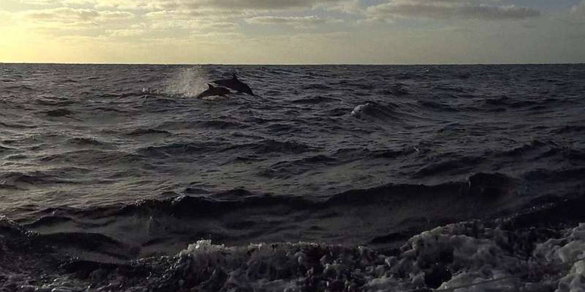 Ungewohnt war auch der Anblick eines voll ausgerefften Großsegels. Es war einfach traumhaft hier vor der argentinischen Küste zu segeln, so dass auch mal vergessen wurde die folgende Wache zu wecken. Bei 11Kt Boatspeed hatte eine riesige Delphinschule wieder ihren Spaß. Für die Tierwelt ist die Haspa Hamburg besimmt ein Highlight hier im Südatlatlantik. Denn Boote zum spielen gibt es hier eigentlich nicht. Nur Fischer mit riesigen Fangnetzen und unglaublich hellen Scheinwerfern, die, auf das Wasser gerichtet, Beute anlocken sollen. Da ist es nicht schwer die Freude der Delphine an den großen Augen und den hohen Luftsprüngen durch die tiefblauen Wellentäler zu erkennen. Einige Stunden begleiteten sie uns heute fleißig.