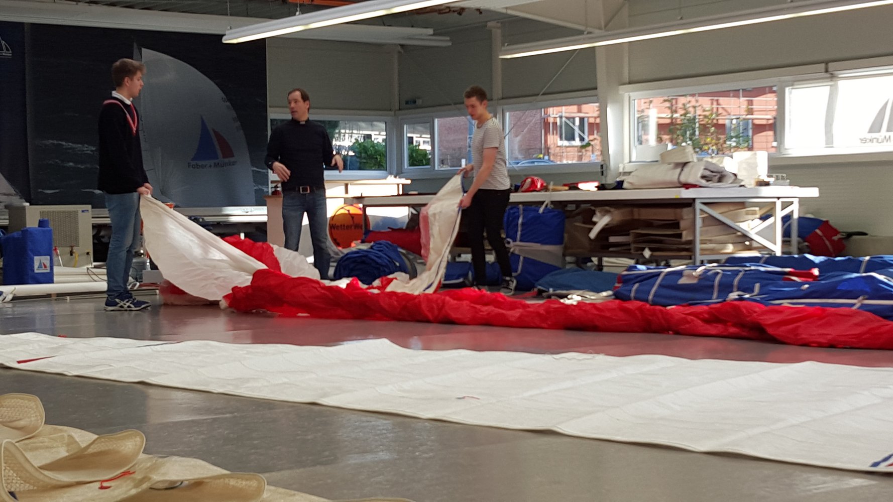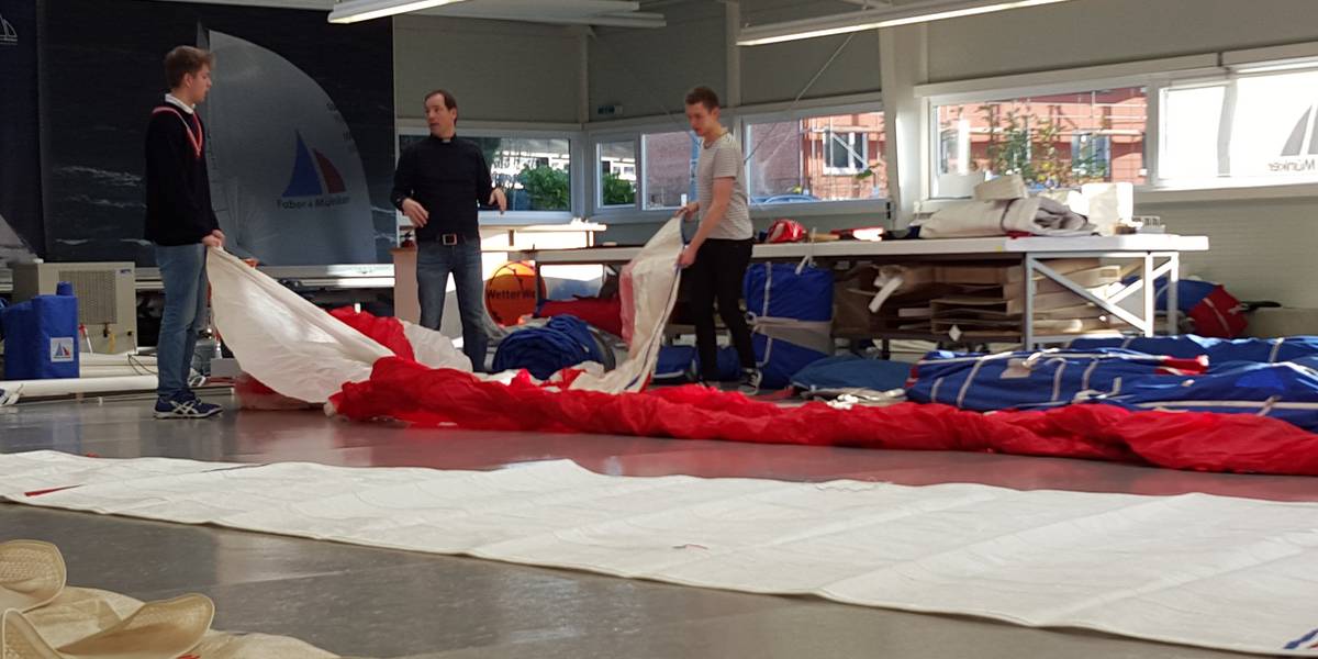 Am vergangenen Samstag haben sich Torben und Hendrik mit den Bootsmännern Max und Carl bei Faber & Münker, um alle Segel der BROADER VIEW HAMBURG auf Schäden zu überprüfen. Unterstützt wurden sie dabei auch noch von Thore, der auch bei der umfangreichen Aufgabe mit dem Titel