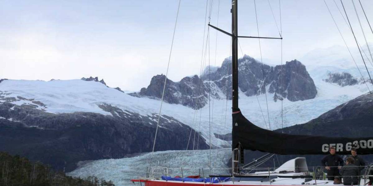 Dem gegenüber stehen einfach nur faszinierende unberührt-rauhe Berge mit Schnee und Gletschern! Diese weisen alle Weiß- und Blautöne auf, vermischt mit grau. Die letzte Nacht verbrachten wir in einer zu dieser Beschreibung passenden Bucht mit dem neuen schottischen Pflug-Anker plus Reitgewicht. Morgens unterhielten uns nicht nur etliche Delfine in choreografisch anmutendem Schwimm-Ballett. Um uns herum schwammen auch zahlreiche Eisstückchen, die offensichtlich kontinuierlich von den Gletschern abbröckeln. Den Begriff „Kalben“ kann man hier allerdings für die Vorstellung unserer Leser nicht verwenden: die Stückchen sind einfach zu klein. Ach ja, das Angeln wird auch immer gerne unter Fahrten-Seglern versucht (Prinzip Hoffnung…). Aber auch das hat seine Tücken, denn das hier allgegenwärtigen Kelp zeigt dann eben auch gerne seine Zähigkeit, wenn es sich über Nacht in der Angelschnur verhakt………. Zu tun gibt es also immer genug, auch wenn es nicht immer genau so geplant wurde.