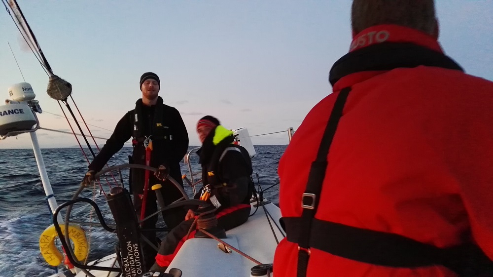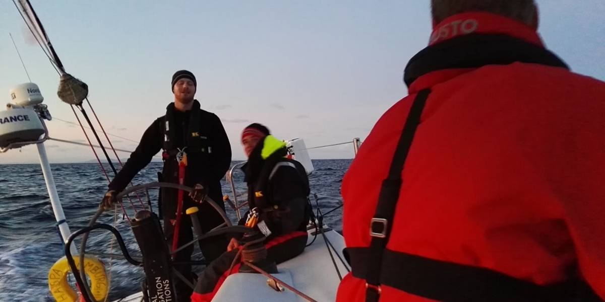 Allerdings kann man es uns bekanntermaßen nicht recht machen: Wir befürchten, dass der Wind über Nacht einschläft. Aktuell (23:00h lokal) sind schon Phasen mit nur 5 Knoten dabei. Auch wenn wir konstant mehr Boatspeed als Windspeed haben, lässt sich das nicht beliebig durchhalten. Wir hoffen auf mindestens acht Knoten, um auf Südkurs mit achteinhalb voranzukommen. Was die Platzierung angeht, haben sich unsere Ziele natürlich etwas verschoben. Wir haben fast einen ganzen Tag verloren und müssen auch auf die Entscheidung der Rennleitung warten, wie unser Zwischenstopp zu