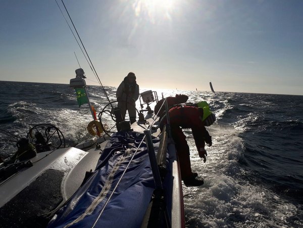 Die alljährlichen Feuerwerksmeisterschaften von Plymouth waren schon aus 20 Seemeilen Entfernung zusehen und zeigten uns zuverlässig die letzten Meilen bis zur Ziellinie. Um 23:53:52 UTC ertönte das erlösende Tuten vom Breakwater Leuchtturm, wir hatten es geschafft!! Feierlich wurde das Zielbier geöffnet, aus Gewichtsgründen eine Dose für alle 11 Crewmitglieder. Nach dem Anlegen und Einklarieren gab es noch ein großes Bier und einen noch größeren Burger, eine Dusche und um halb 5 lagen wir erschöpft aber zufrieden in den Kojen.