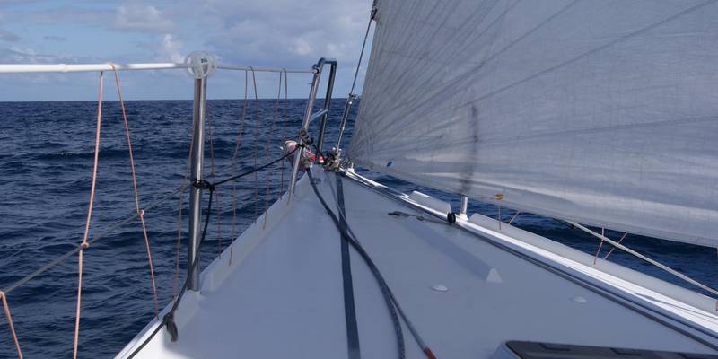 Ab heute geht es wieder südwärts! Im Anschluss an einen wunderschönen Morgen unter Sonne und Gennaker haben wir nun den Peak unseres Nordschlenkers erreicht. Nachdem wir das Großsegel geborgen haben um zwei gebrochene Latten zu wechseln, sind wir wieder auf Kurs und im Rennen. Jetzt rauschen wir 12kn Reisgeschwindigkeit und auch mal einer 18 in der…