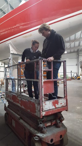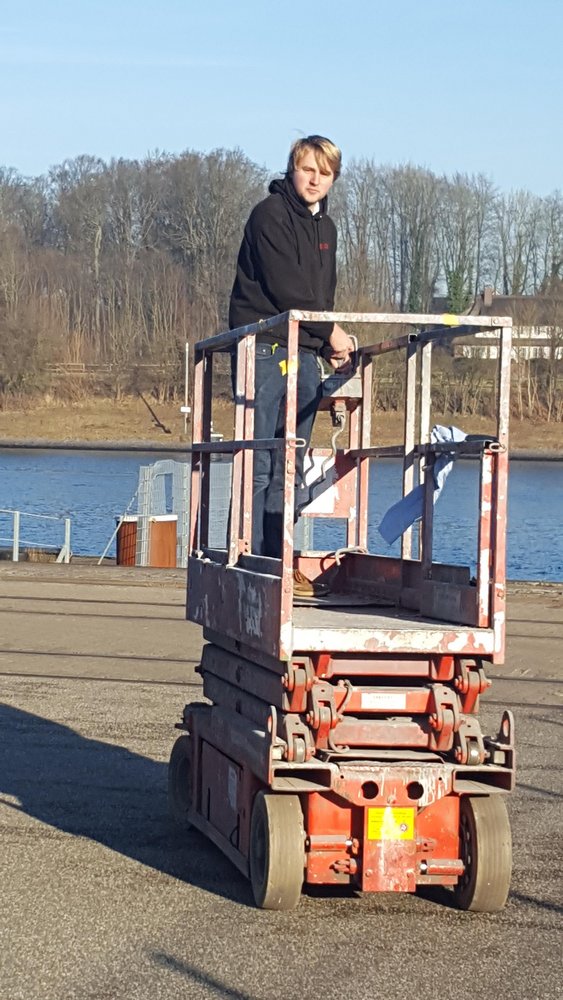 Es stand unter anderem der Unterwasseranstrich der Haspa Hamburg auf der Agenda. Vorher musste Janne allerdings erst einmal in die Technik der mobilen Hebebühne eingewiesen und die Kisten von Bord der Haspa Hamburg geholt werden.