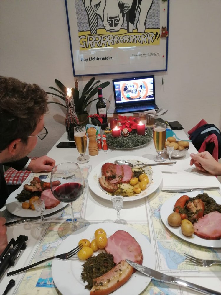 Je nach aktueller Verordnungs- und Wohnlage bildeten sich kleine Teams im HVS, um sich eine Webcam und selbst gekochten Grünkohl zu teilen. Dadurch erreichten wir eine rekordverdächtige Teilnehmerzahl, da weder die Räumlichkeiten noch eine Anreise Einschränkungen darstellten. 1:0 für Digital!