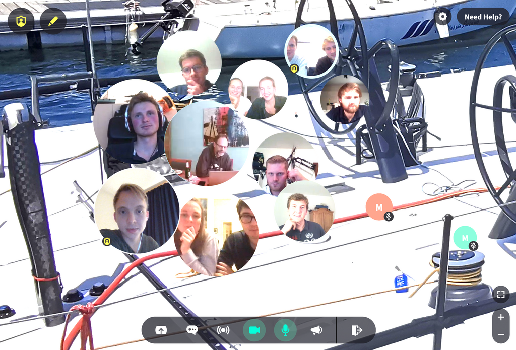 Die klassische Version einer Videokonferenz sieht ja erfahrungsgemäß so aus: 20 Teilnehmer, Eine(r) spricht, Zwei atmen ins Mikrofon, 17 stumm geschaltet. Dieses Mal zum Glück nicht. Ein neues Tool namens Spatial sorgte dafür, dass man seine Position im virtuellen Raum selbst wählen und sich "von Tisch zu Tisch" bewegen konnte. Man hörte nur den kleinen Videokreisen im direkten Umfeld beim Atmen zu.